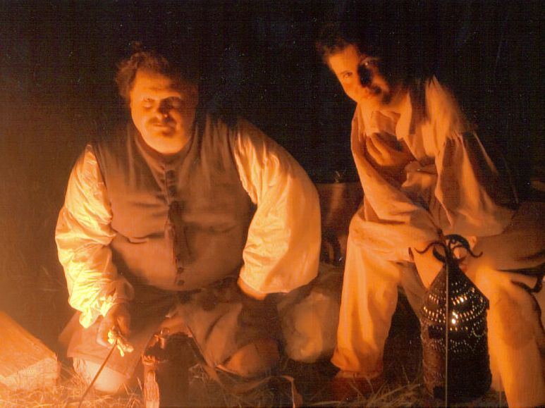 2008 - My son Andrew and I at our camp's cook fire during the Fort Frederick Market Fair.